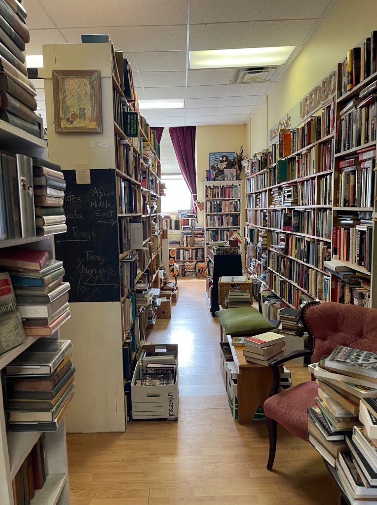 I want this space to be comfortable. Full of quality and interesting books. Priced to sell. My philosophy and business plan has always been to present this store as one would enter years before the interent. An old fashioned used bookstore. Like one found on the streets of NYC – Book Row – in the 30’s. Except heated, uncovered windows for natural light, and a pleasant bookseller who will sell you a book. 😉 Even if it’s one she’s currently reading.